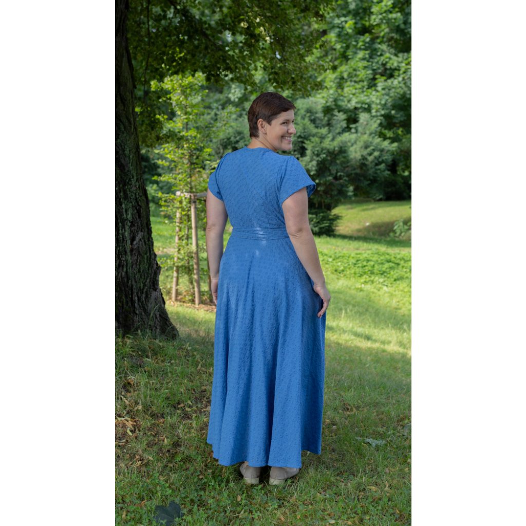 Dlouhé zavinovací šaty Andromeda jsou ušité z jemné madeiry.